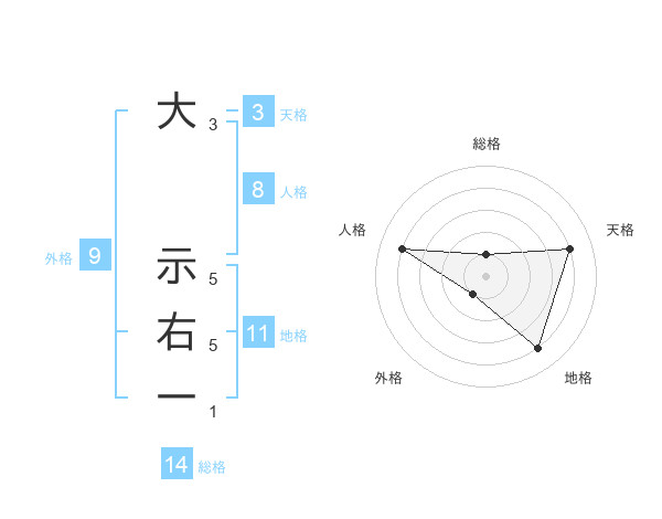 大 示右一さんの総格は14画の1点!