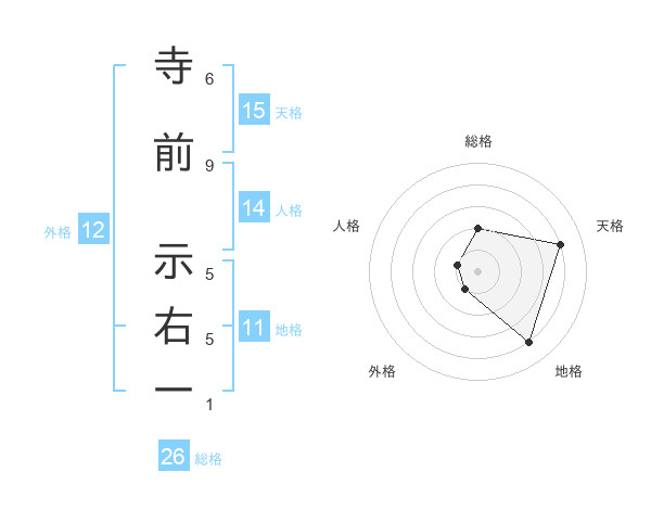 寺前 示右一さんの総格は26画の2点!