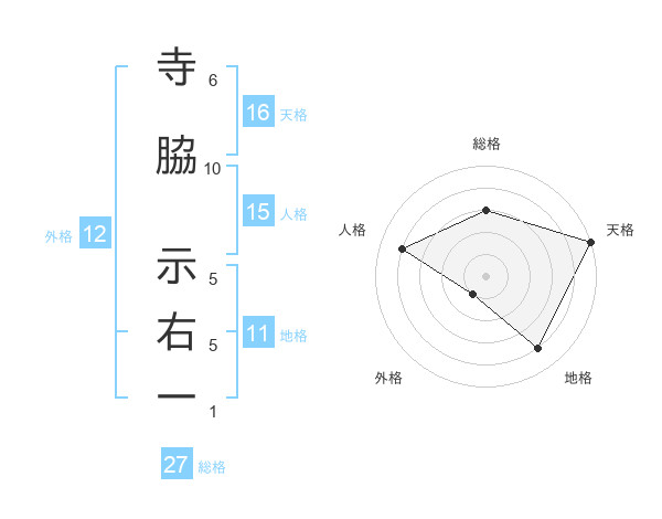 寺脇 示右一さんの総格は27画の3点!