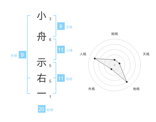 小舟 示右一さんを姓名の画数から五運を鑑定