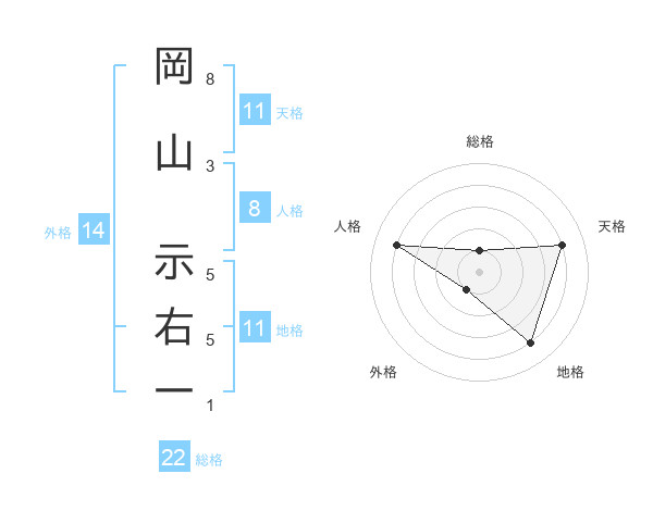 岡山 示右一さんを姓名の画数から五運を鑑定