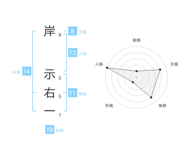 岸 示右一さんの天格は8画の4点!