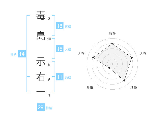 毒島 示右一さんの総格は29画の4点!