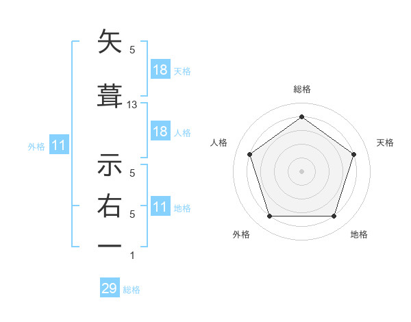 矢葺 示右一さんを姓名の画数から五運を鑑定