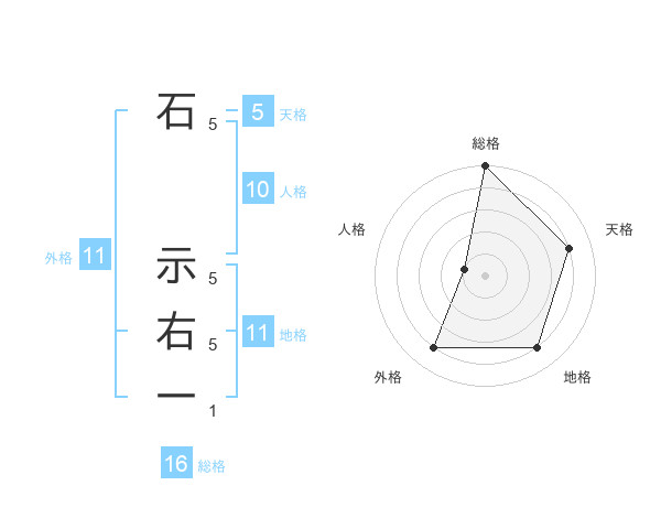 石 示右一さんの総格は16画の5点!