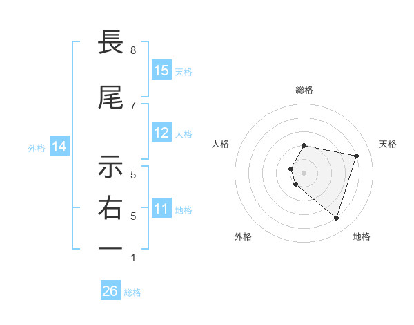 長尾 示右一さんを姓名の画数から五運を鑑定