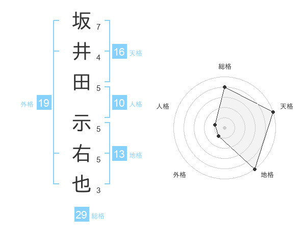 坂井田 示右也さんを姓名の画数から五運を鑑定