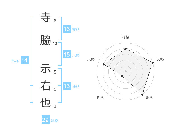 寺脇 示右也さんを姓名の画数から五運を鑑定