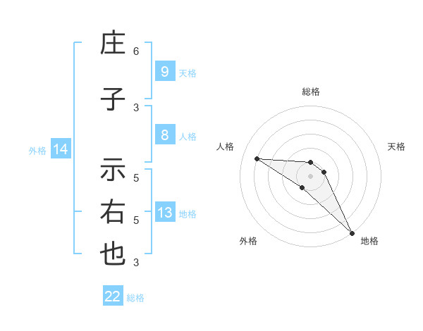 庄子 示右也さんの総格は22画の1点!