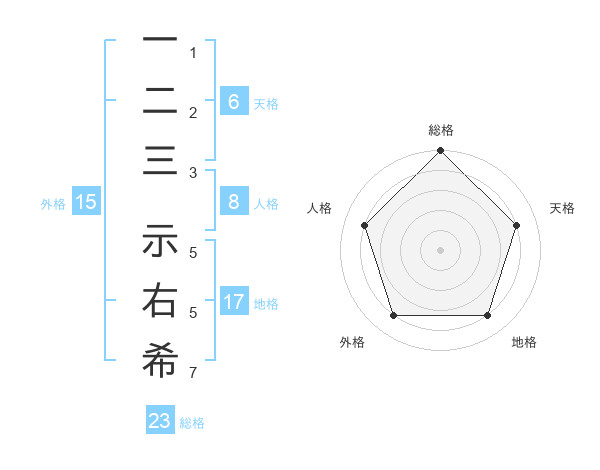 一二三 示右希さんを姓名の画数から五運を鑑定