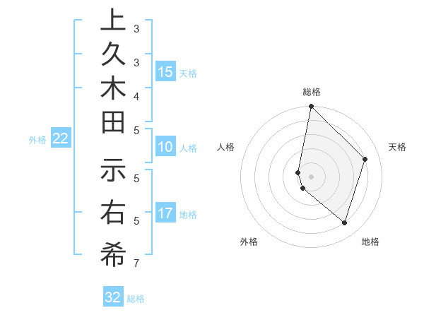 上久木田 示右希さんを姓名の画数から五運を鑑定