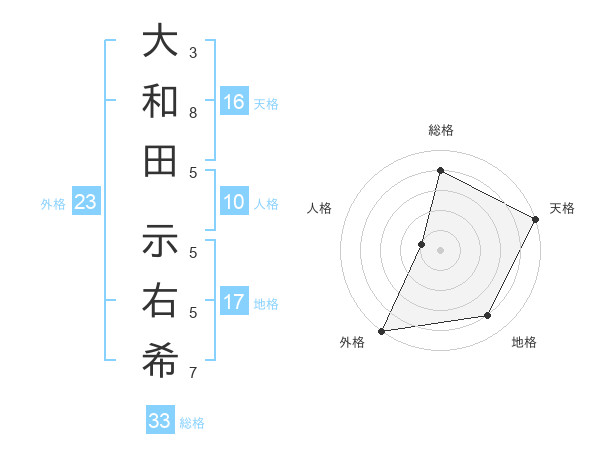 大和田 示右希さんを姓名の画数から五運を鑑定