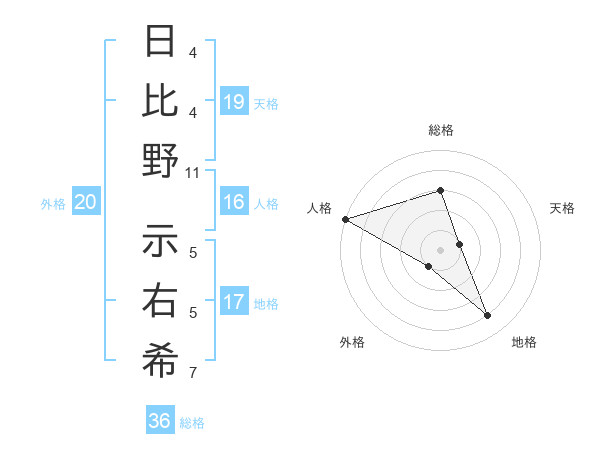 日比野 示右希さんを姓名の画数から五運を鑑定