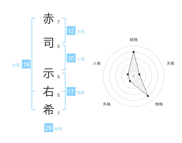 赤司 示右希さんの地格は17画の4点