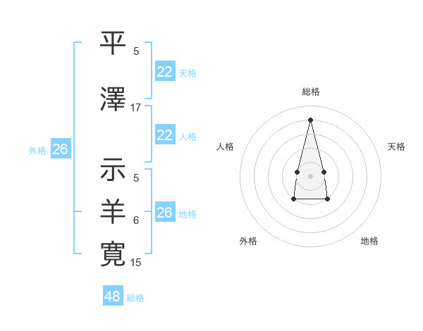 平澤 示羊寛さんを姓名の画数から五運を鑑定