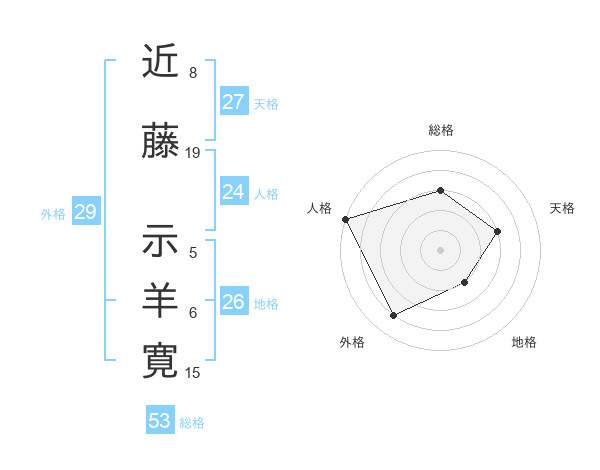 近藤 示羊寛さんを姓名の画数から五運を鑑定