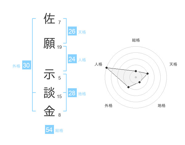 佐願 示談金さんを姓名の画数から五運を鑑定