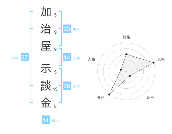 加治屋 示談金さんを姓名の画数から五運を鑑定