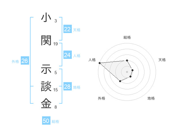 小関 示談金さんの総格は50画の2点