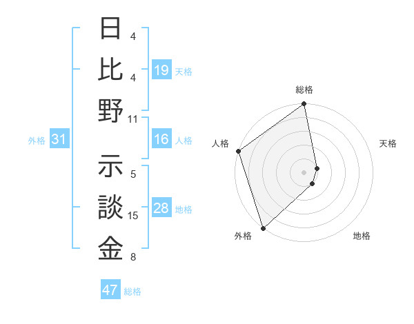 日比野 示談金さんを姓名の画数から五運を鑑定