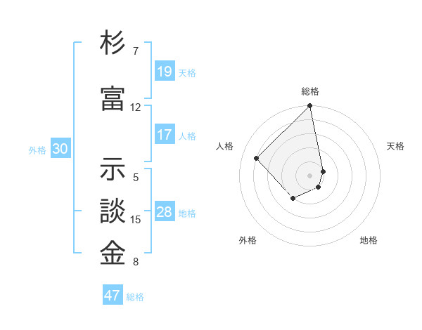 杉富 示談金さんの総格は47画の5点!