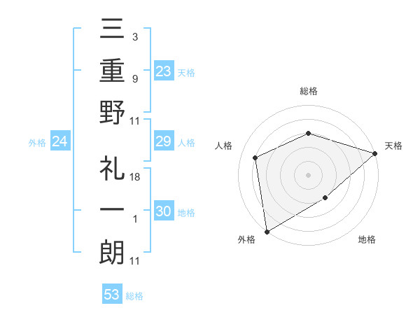 三重野 礼一朗さんを姓名の画数から五運を鑑定