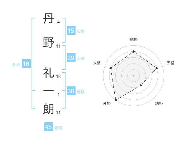 丹野 礼一朗さんの総格は45画の4点!