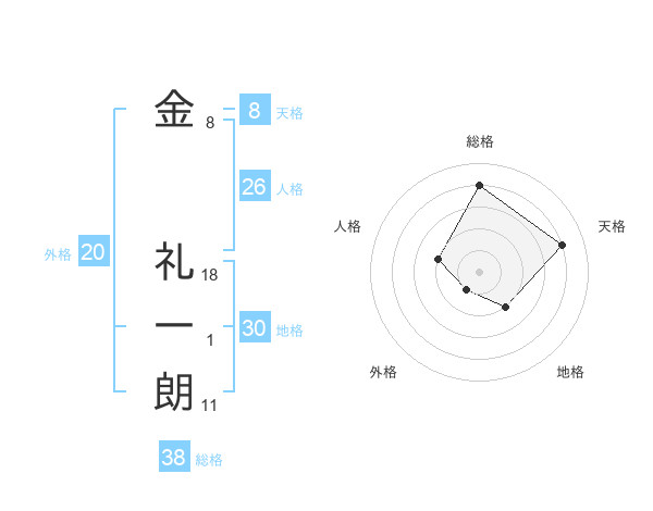 金 礼一朗さんを姓名の画数から五運を鑑定