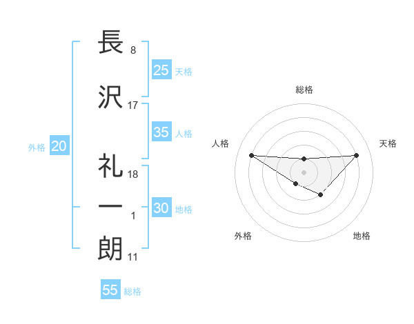 長沢 礼一朗さんの地格は30画の2点!