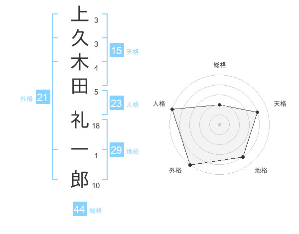 上久木田 礼一郎さんを姓名の画数から五運を鑑定