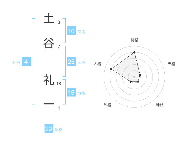土谷 礼一さんを姓名の画数から五運を鑑定