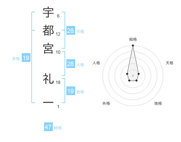 宇都宮 礼一さんを姓名の画数から五運を鑑定