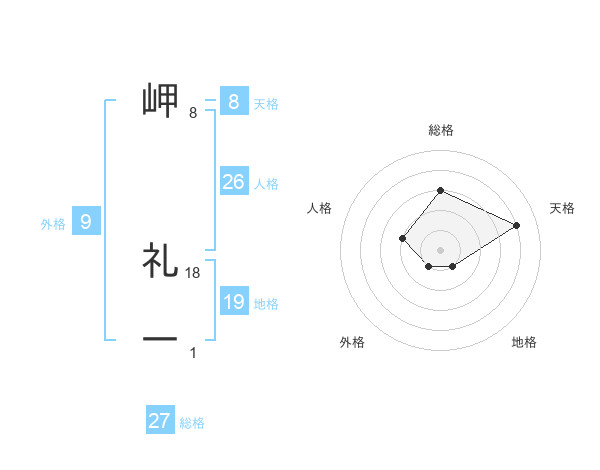 岬 礼一さんの総格は27画の3点!