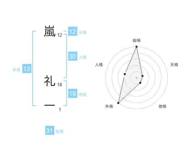 嵐 礼一さんの総格は31画の5点!