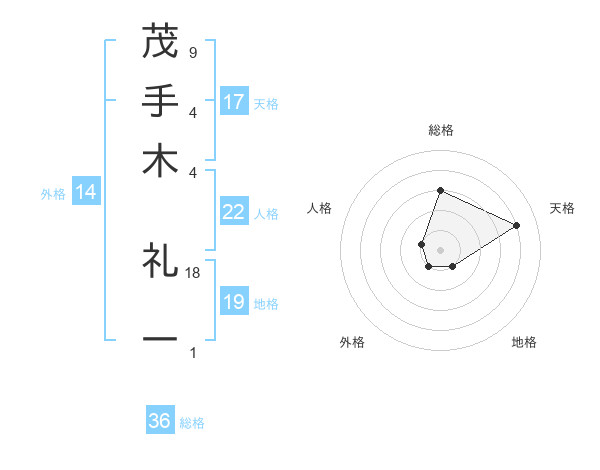 茂手木 礼一さんの天格は17画の4点!