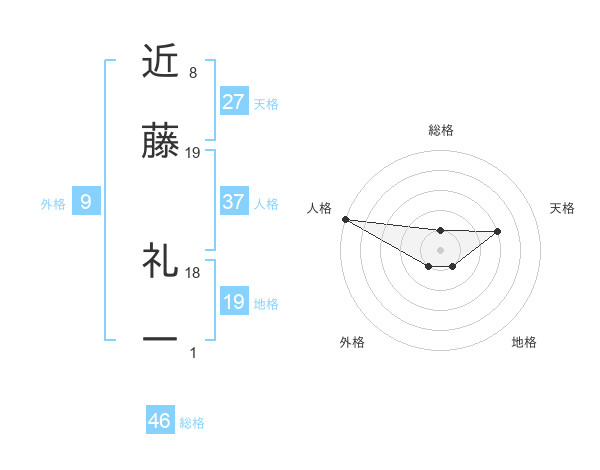 近藤 礼一さんの総格は46画の1点!