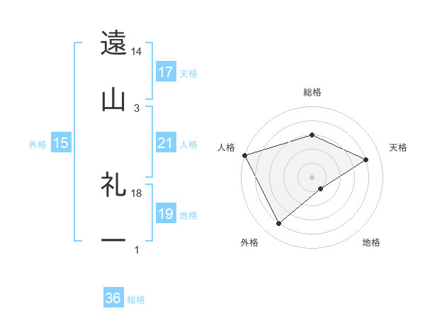 遠山 礼一さんの天格は17画の4点!