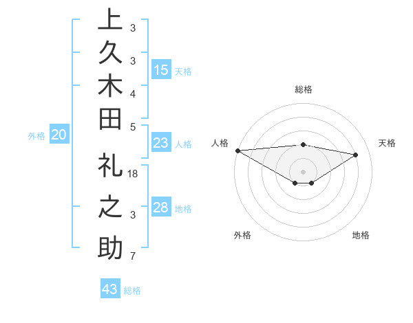 上久木田 礼之助さんを姓名の画数から五運を鑑定
