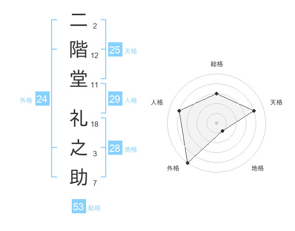 二階堂 礼之助さんを姓名の画数から五運を鑑定