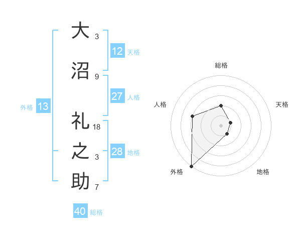 大沼 礼之助さんの外格は13画の5点!