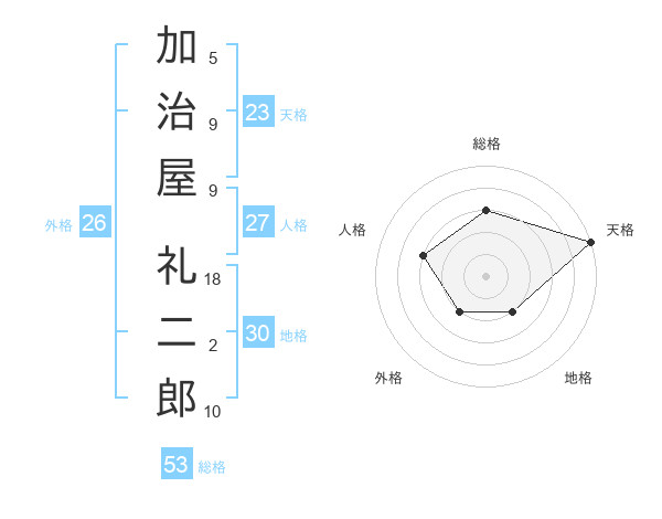 加治屋 礼二郎さんの名前の鑑定結果は!