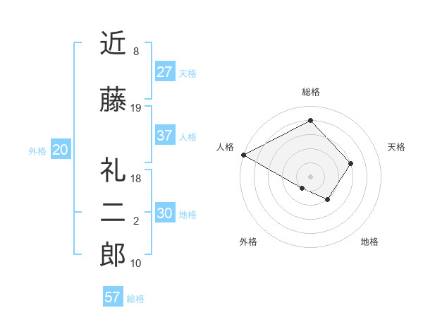 近藤 礼二郎さんを姓名の画数から五運を鑑定