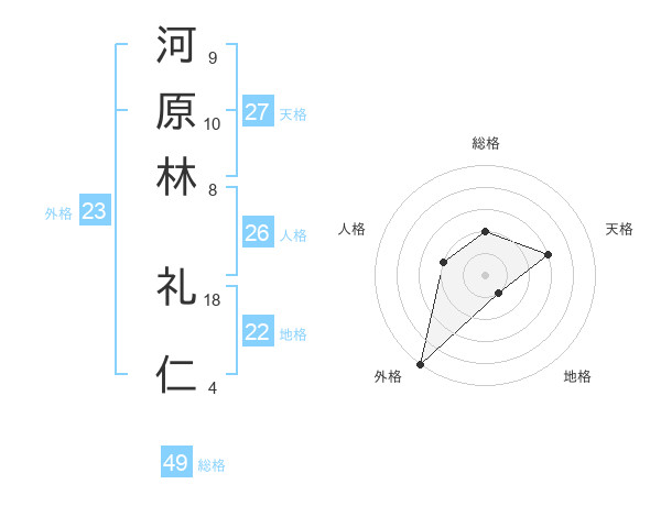 河原林 礼仁さんの総格は49画の2点!