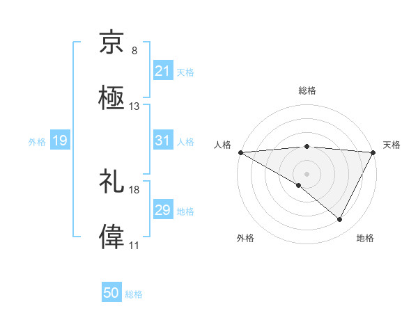 京極 礼偉さんの総格は50画の2点!