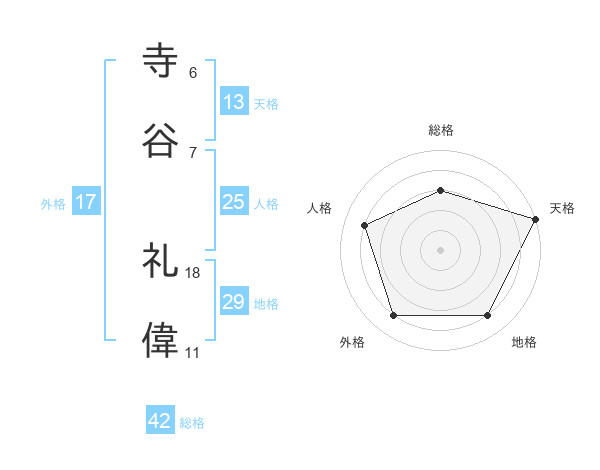 寺谷 礼偉さんを姓名の画数から五運を鑑定