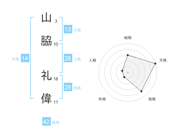 山脇 礼偉さんを姓名の画数から五運を鑑定