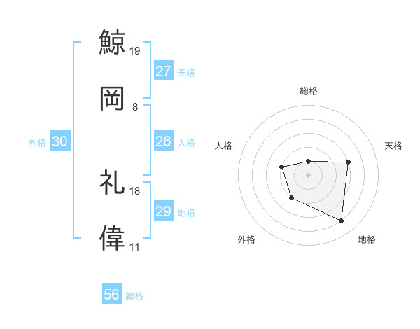 鯨岡 礼偉さんの総格は56画の1点!