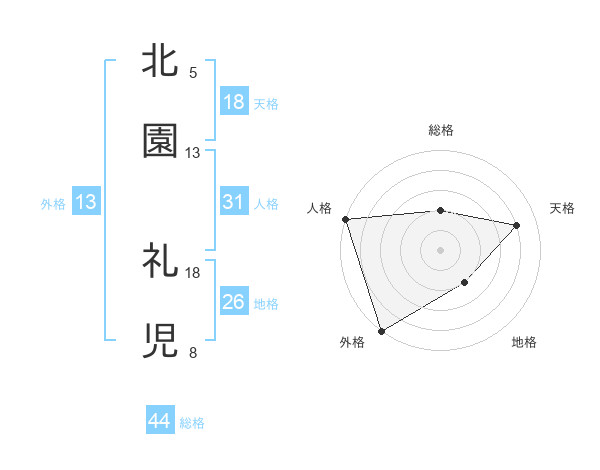 北園 礼児さんの外格は13画の5点!