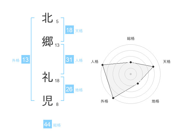 北郷 礼児さんを姓名の画数から五運を鑑定