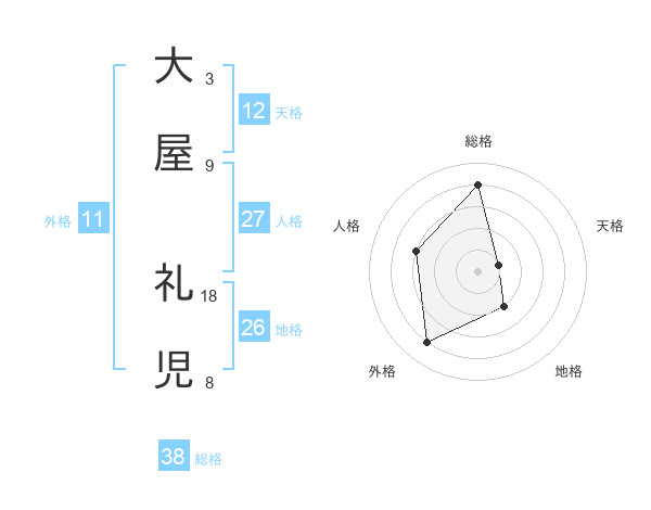 大屋 礼児さんの総格は38画の4点!